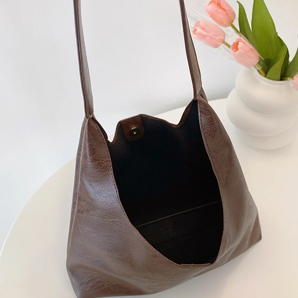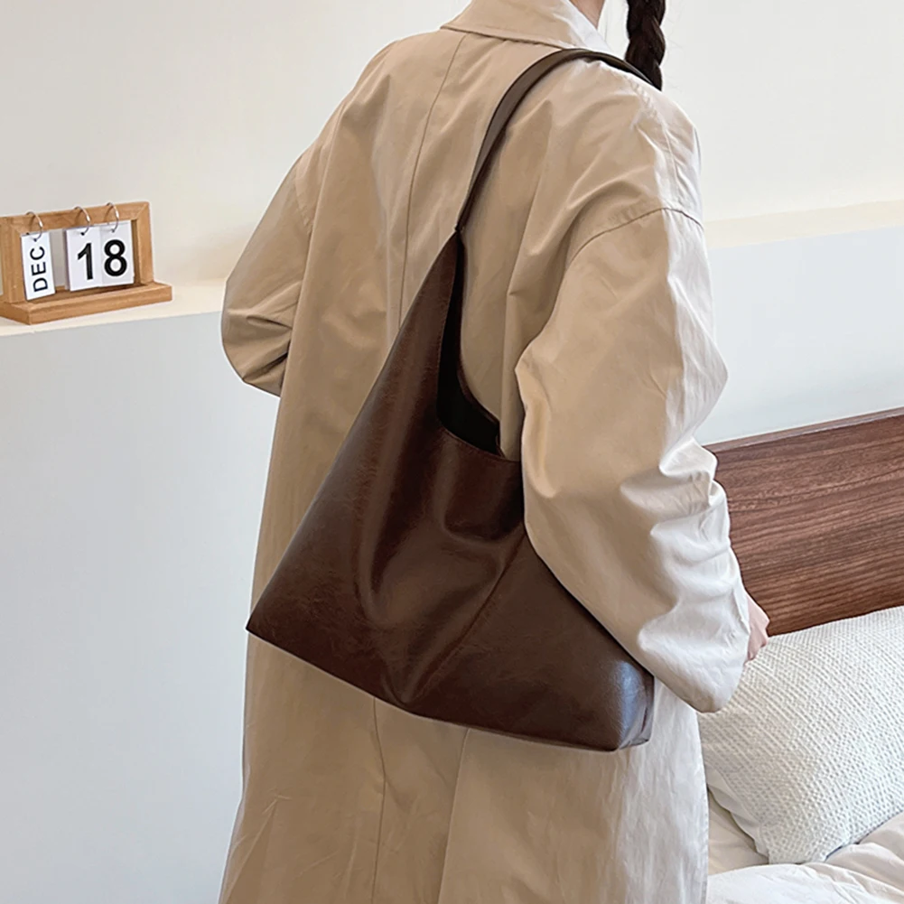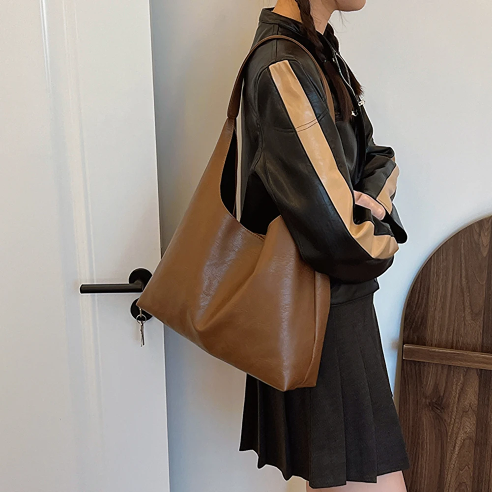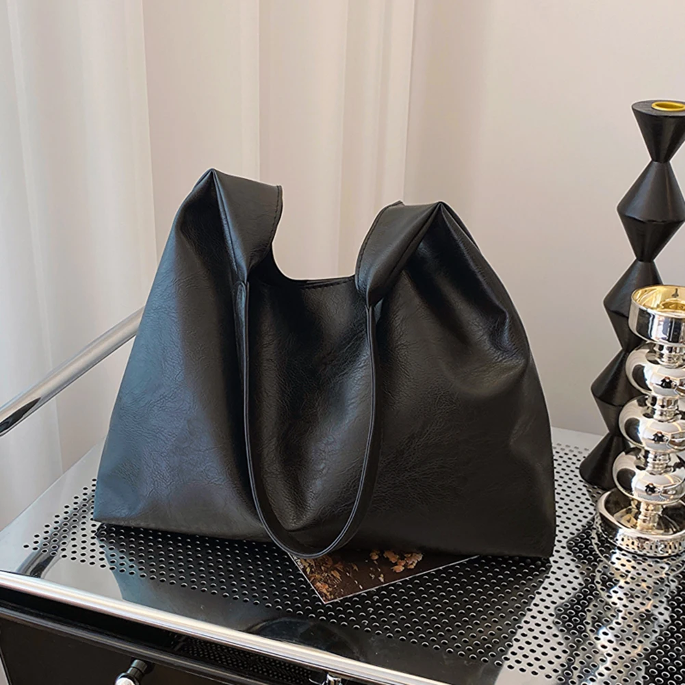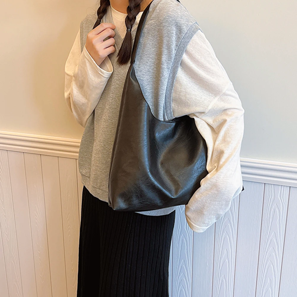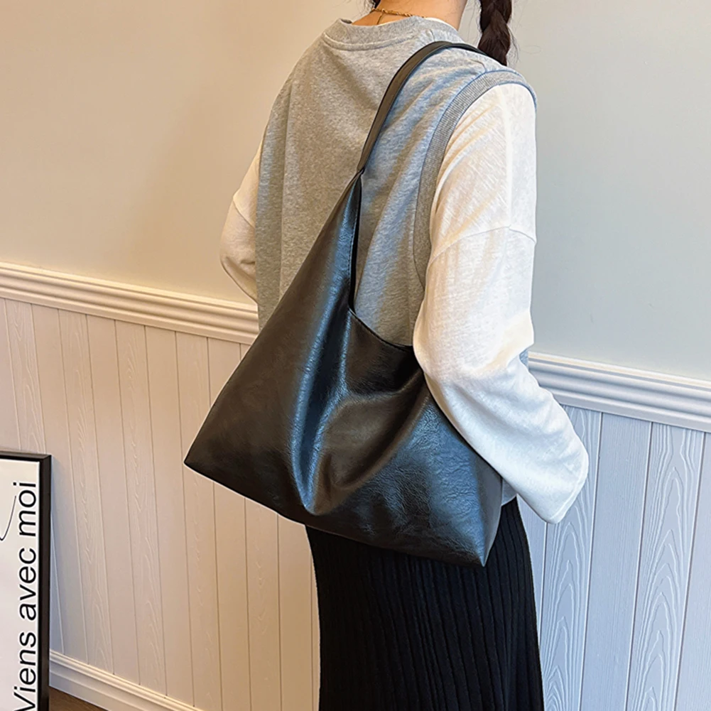 PU Soft Leather Tote Bag Large Capacity Women Big Shoulder Bag Female Simple Underarm Bag Hasp Closure Casual Commuting Bag